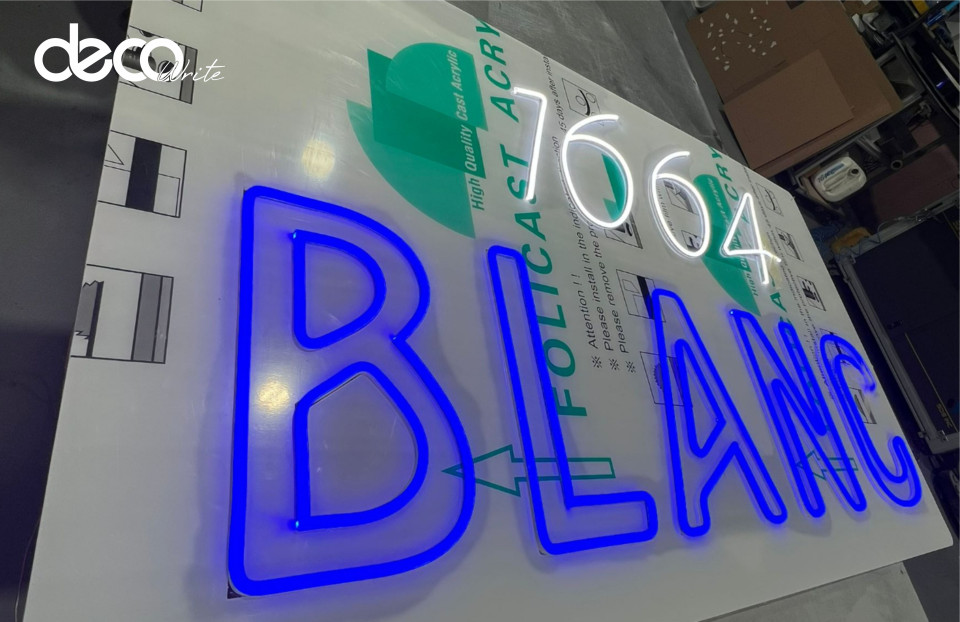 שילוט לד גמיש צבע כחול על בסיס פרספקס שקוף