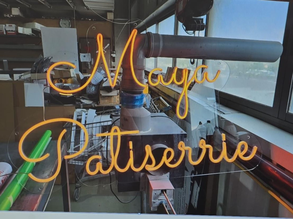 שלט נאון לד צבע צהוב לחנות קונדיטוריה