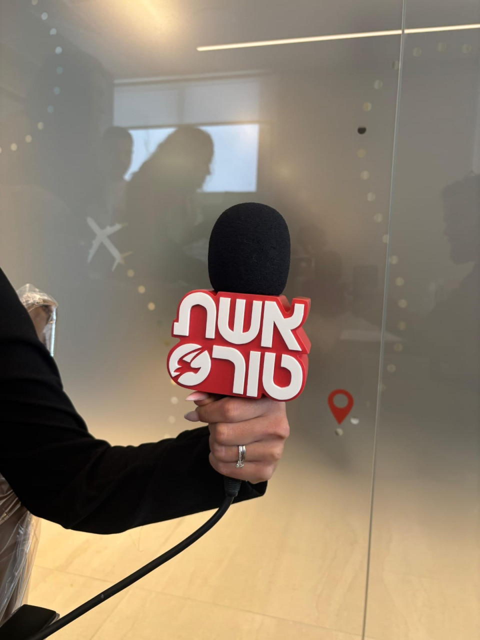 קוביית מקרופון בנויה תלת מימד  עם לוגו החברה מובלט