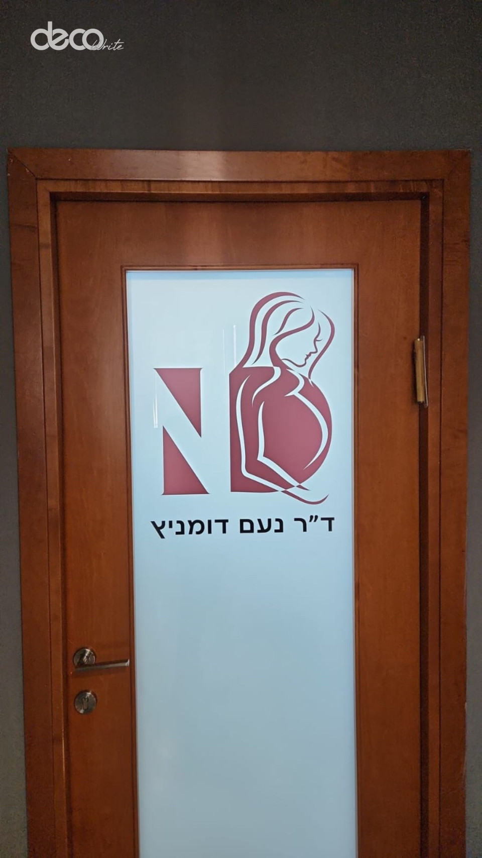 מדבקת התזת חול (חלבית על כל הדלת ) כולל לוגו בהדפסה לדלת זכוכית מרכז המוח